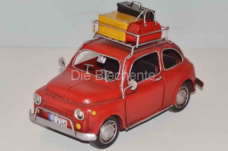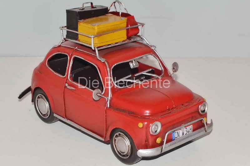 Nostalgisches Blechmodell - Fiat 500 mit Koffer 1960