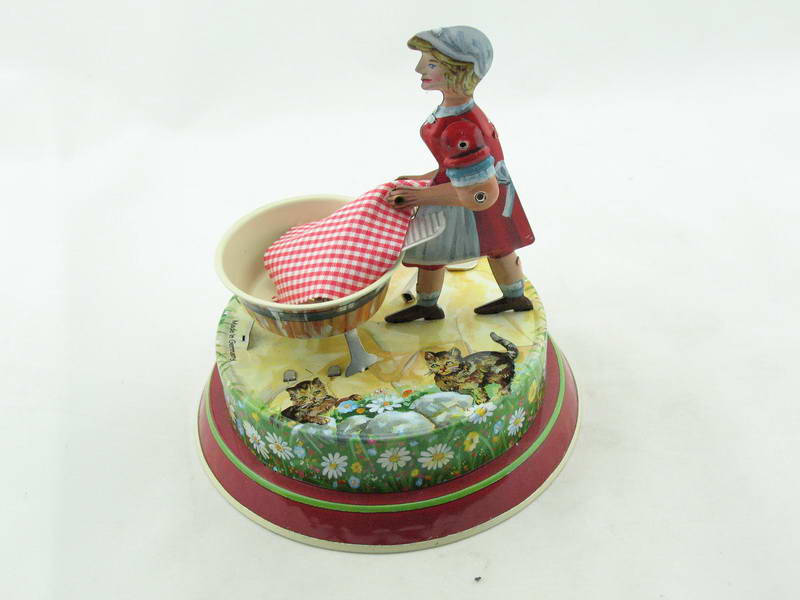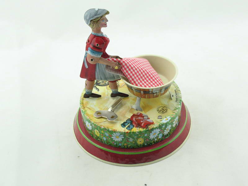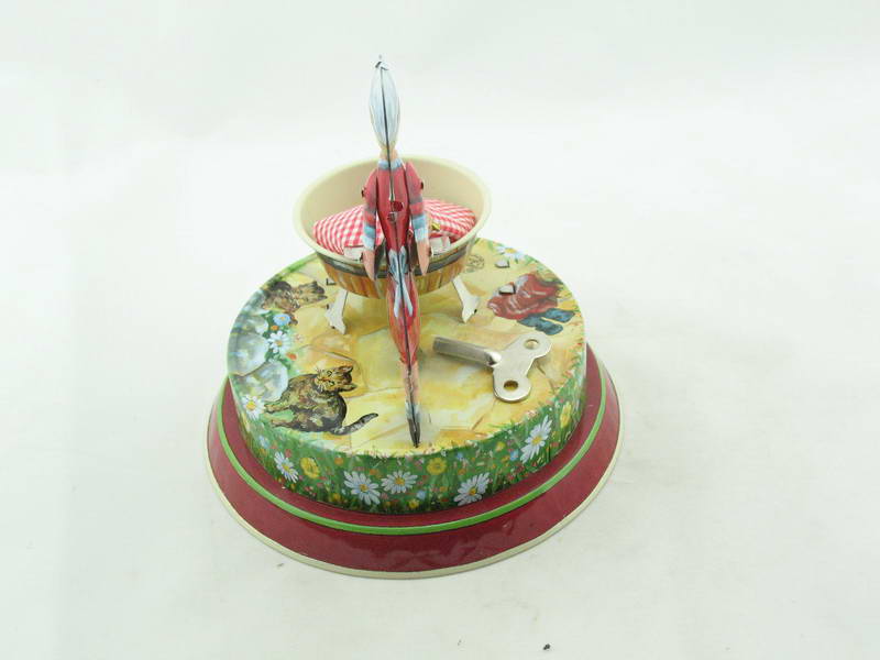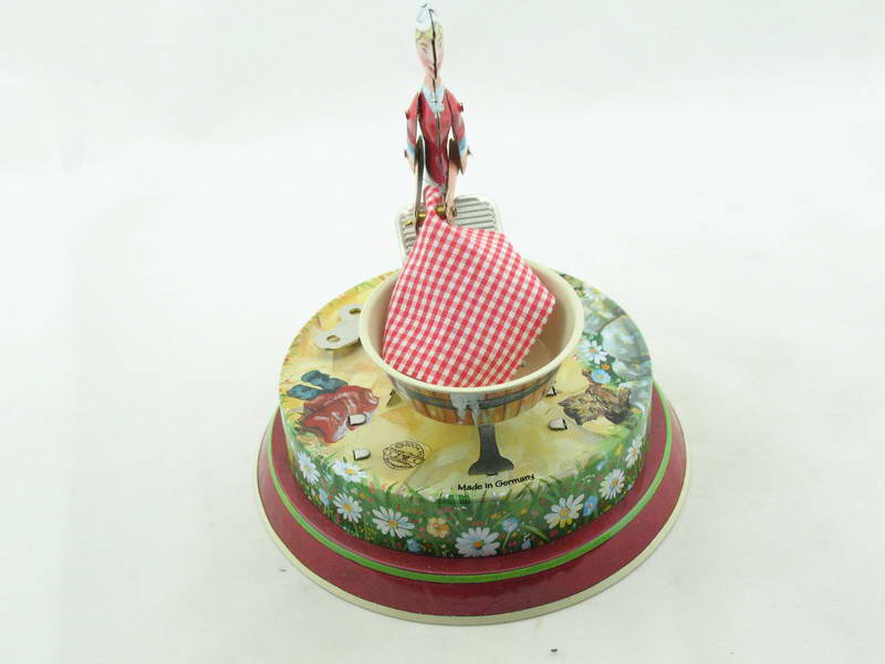 Wenn man das schön bebilderte Blechspiel mit dem mitgelieferten Schlüssel aufzieht,