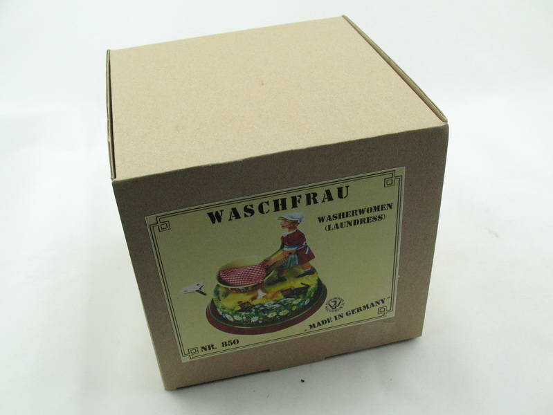 beginnt die fleißige Wäscherin, das Tuch mit dem Waschbrett zu bearbeiten.
