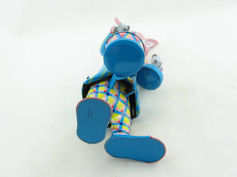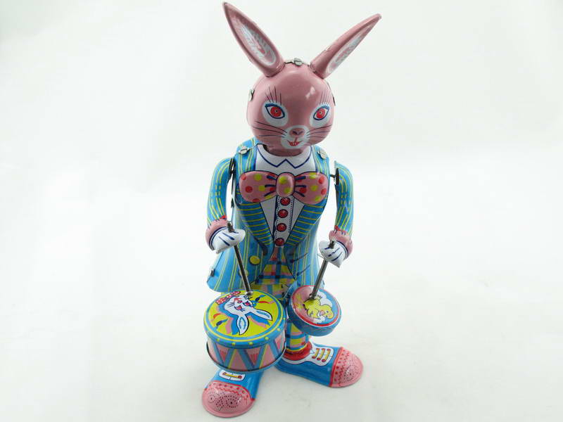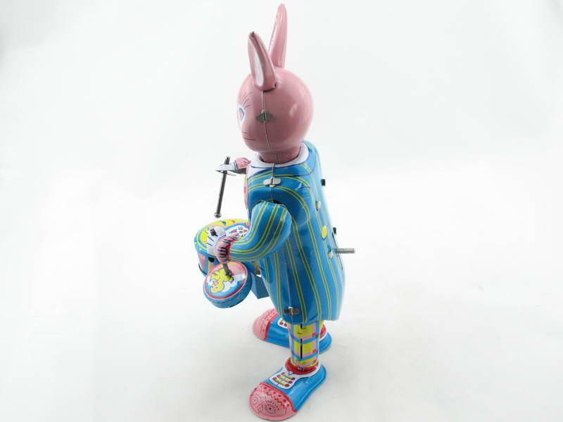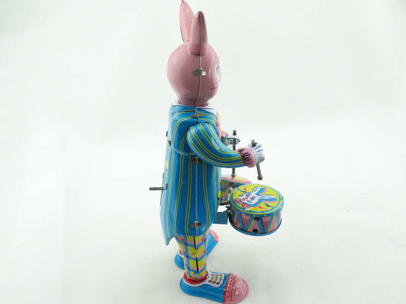 Wenn man den gutgekleideten Musiker mit dem Schlüssel aufzieht,