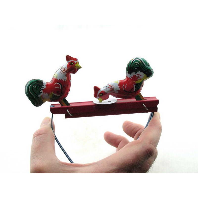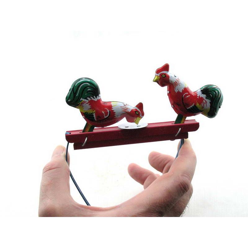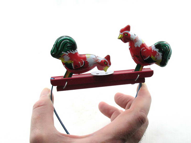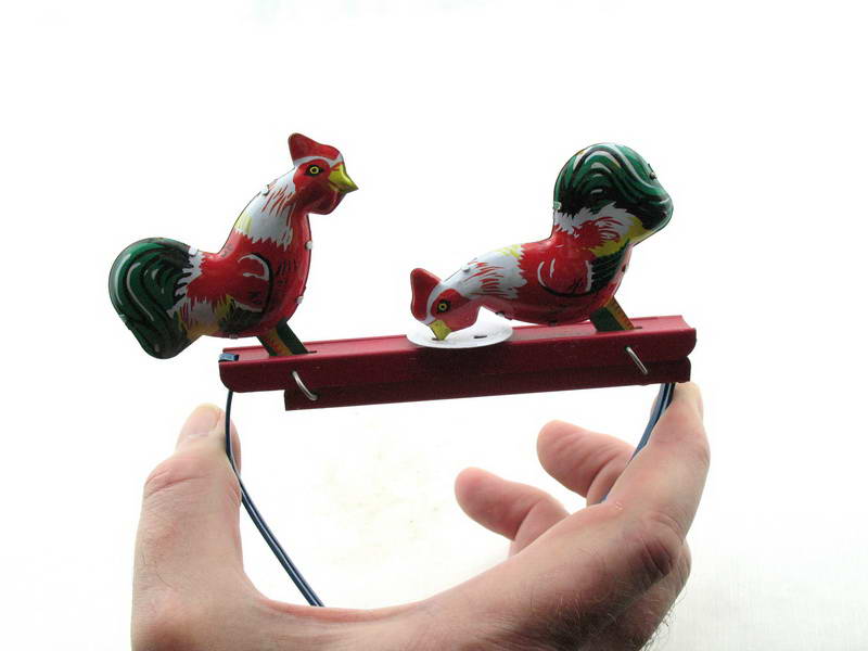 Handspiel mit 2 pickenden Hähnen, komplett aus Blech gefertigt.