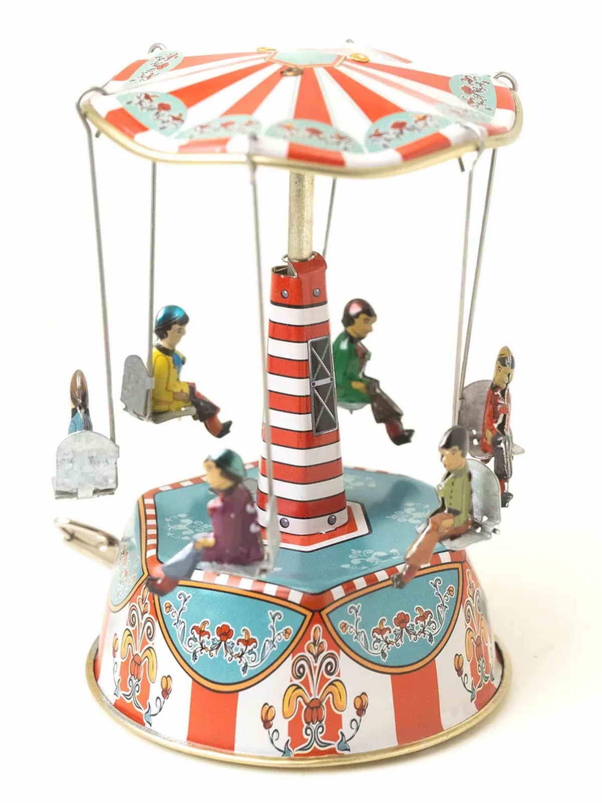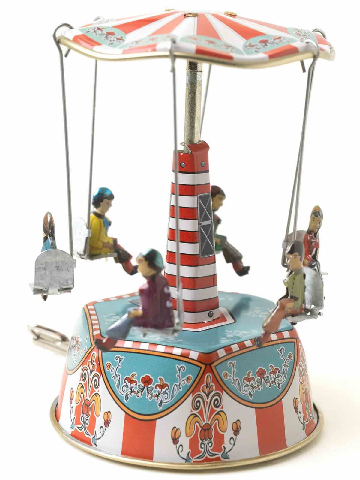 Schön litographiertes Karussell mit 6 Personen, komplett aus Blech gefertigt,