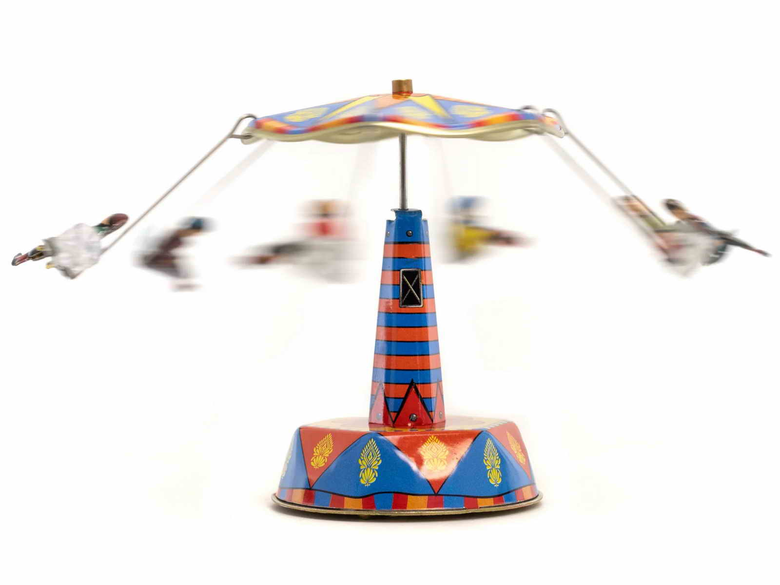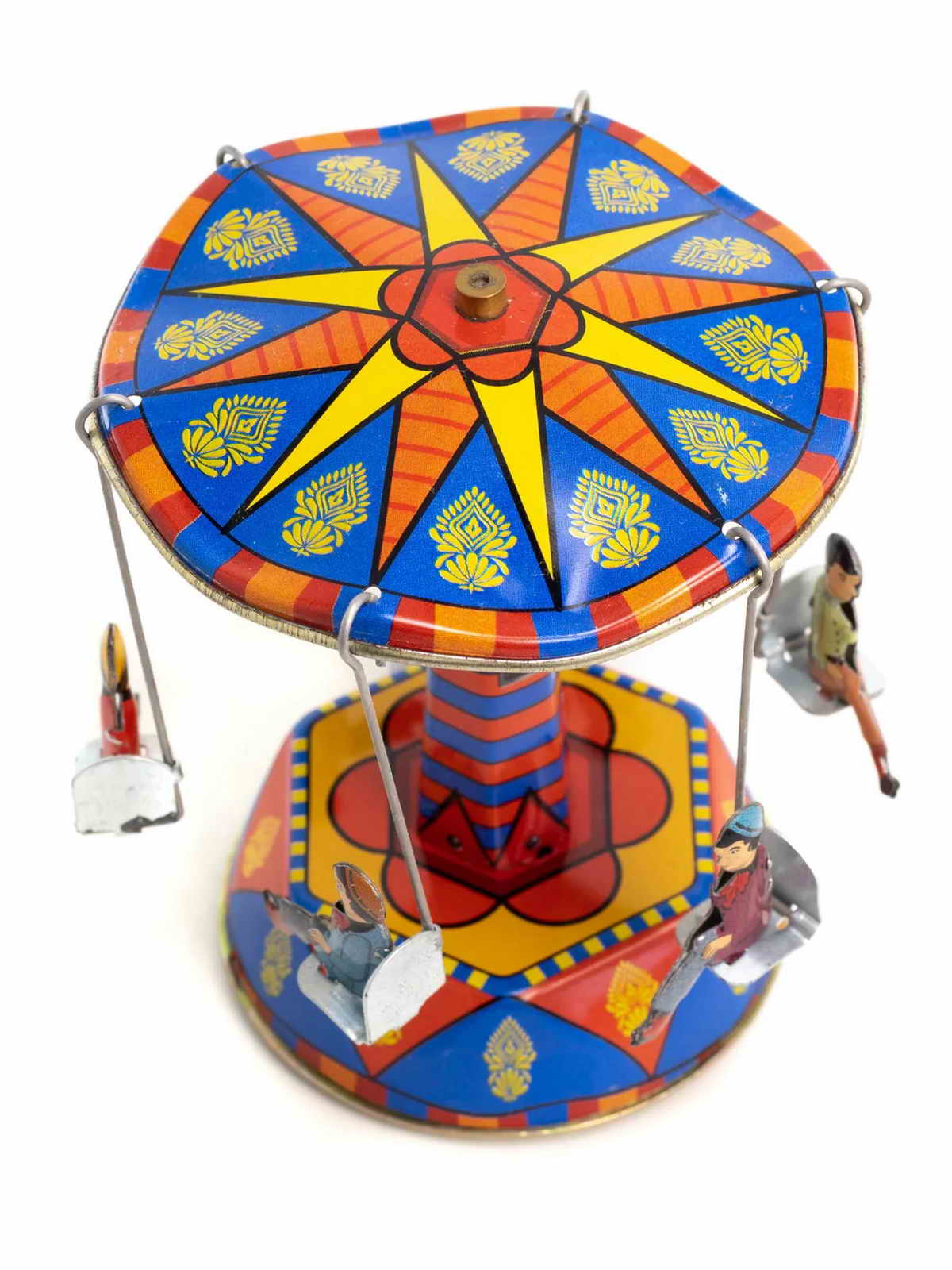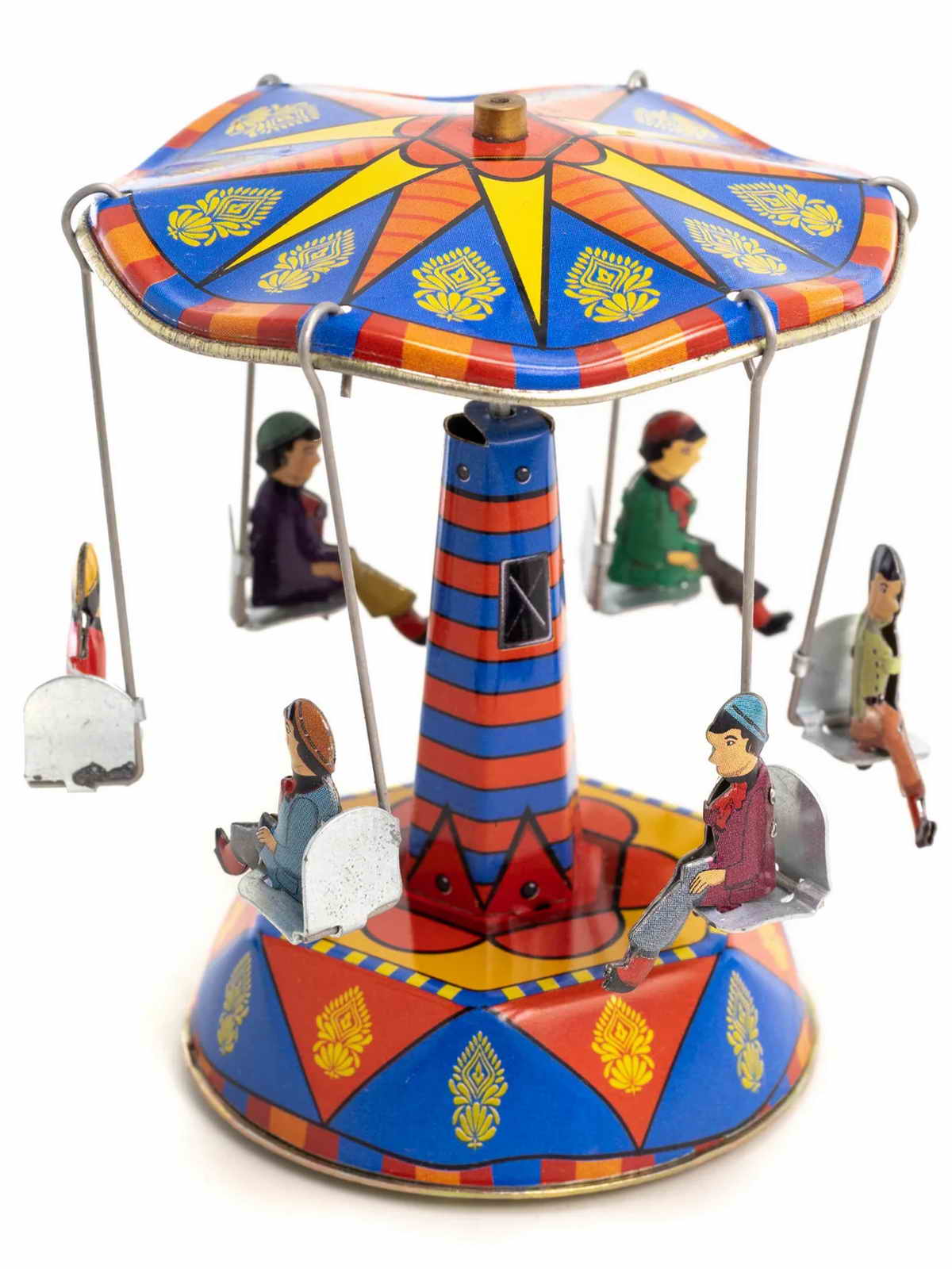 und die sechs Fahrgäste schweben in Ihren Sesseln über dem Jahrmarkt.