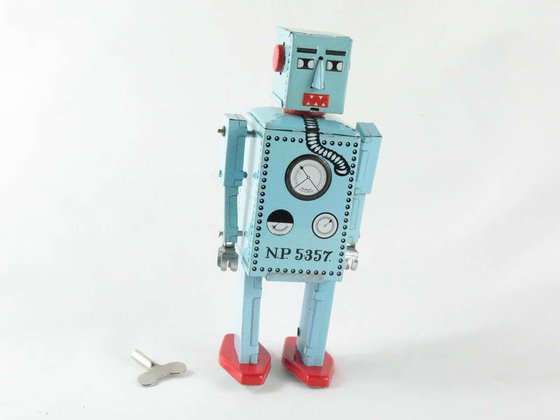 Man kann den Roboter natürlich auch mit dem mitgelieferten Schlüssel aufziehen,