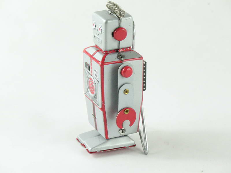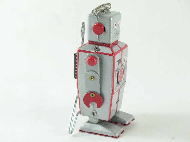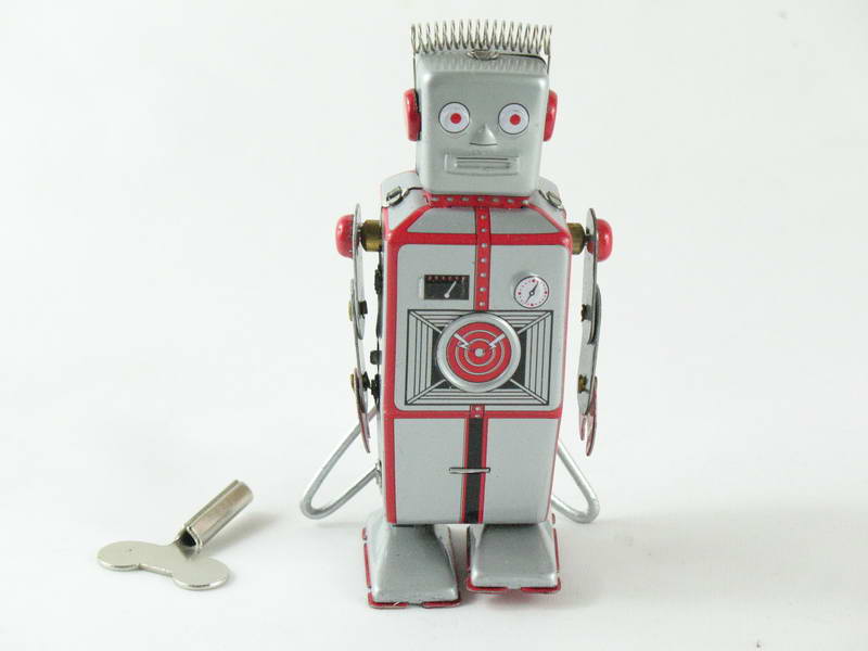 mit dem fest angebrachten Schlüssel aufziehen und ihn gehen lassen.