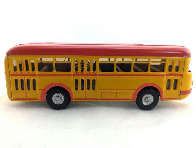 Bus Büssing 1959 Sondermodell gelb/rot mit Uhrwerk von KOVAP - Blechspielzeug, CKO-Replica