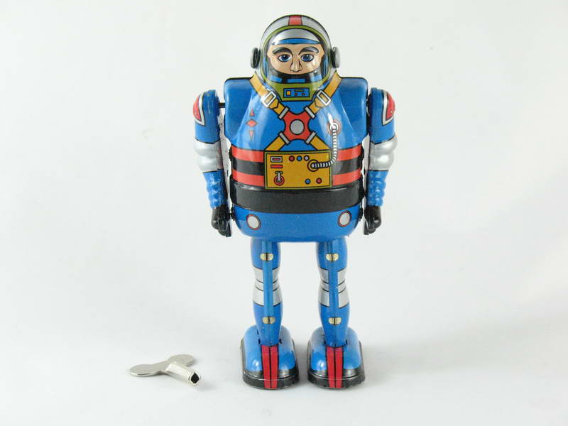 Blechspielzeug - Roboter Astronaut mit beweglichen Armen, blau, ca. 13 cm