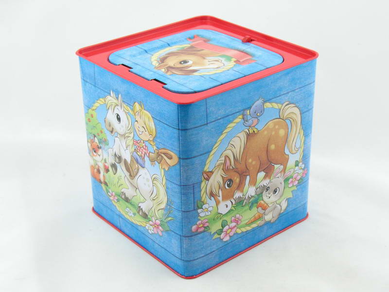 Man stellt die wunderschöne Blechbox auf den Tisch und beginnt an der Kurbel zu drehen...