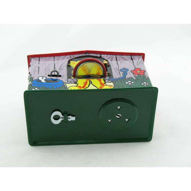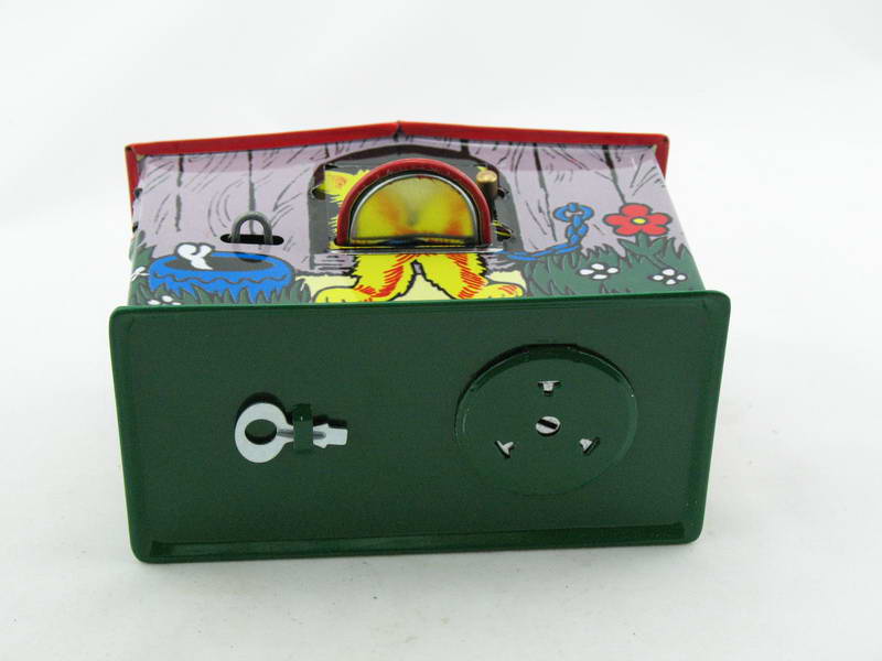 Die Spardose ist mit dem mitgelieferten Schlüssel zu öffnen und zu verschließen.